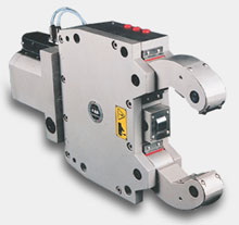 In FRU series the clamping cylinder is fixed as axial extension at the rear end. With FRU-B series the cylinder is fixed to the side of the steady rests to save mounting space.