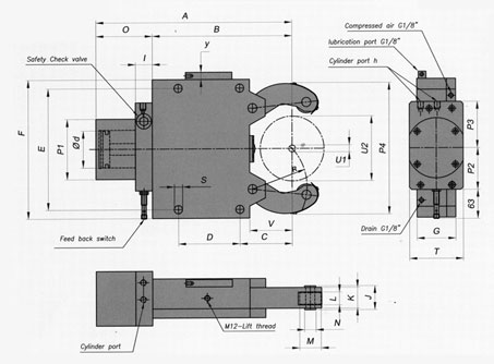 Steady rest can be operated either hydraulically or pneumatically with the only difference being the clamping cylinder bore.